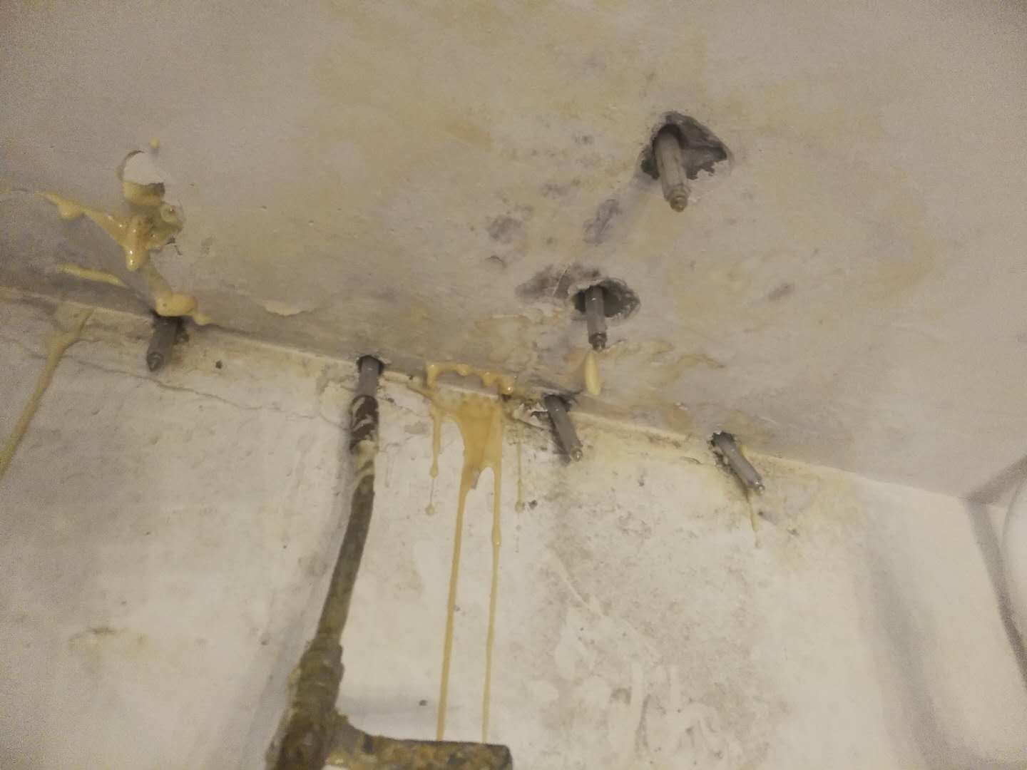 以下是對各具體工序的詳細(xì)梳理: ### 1. 查找裂縫、滲漏點(diǎn) - **裂縫產(chǎn)生原因**:主要源于變形作用,像溫度變形、收縮變形、基礎(chǔ)不均勻沉降變形等多因素。滲漏通常是由混凝土裂縫或混凝土密實(shí)度問題導(dǎo)致。 - **查找方法**:出現(xiàn)滲漏水的地方,其混凝土表面往往附有水堿痕跡,據(jù)此找準(zhǔn)裂縫和滲漏水的具體點(diǎn)位。 ### 2. 鉆機(jī)打孔 - **打孔時機(jī)**:在完成查找裂縫、滲漏點(diǎn)的施工流程后進(jìn)行。 - **打孔要求**:對準(zhǔn)裂縫縫隙以90°垂直混凝土表面打進(jìn)直孔(特殊部位或情況如建筑物陰角部位、施工部位聚集較多鋼筋等,可能改變打孔方法);在裂縫走向每隔15 - 20cm間距布一個鉆孔,孔深度為25 - 40cm(孔深一般不宜小于1/3的建筑物截面深度,不宜大于2/3的建筑物截面深度)。若鉆孔時遇到鋼筋無法達(dá)到要求孔深,宜在旁邊部位補(bǔ)孔。 ### 3. 安裝止水針頭 控制好埋設(shè)針頭的深度(便于后續(xù)敲釘、堵孔、打磨等操作),安裝好注射針頭并擰緊。 ### 4. 檢測灌漿機(jī) - **檢測內(nèi)容**:檢查灌漿機(jī)構(gòu)件、高壓管、牛油頭等是否正常,保證料斗清潔;將灌漿機(jī)通電,用清洗劑進(jìn)行清洗,查看是否存在異常現(xiàn)象。 - **后續(xù)操作**:確保正常后才可進(jìn)入下一道工序。 ### 5. 按比例配漿液 - **配液要求**:認(rèn)真閱讀材料使用說明書,按漿液配比要求進(jìn)行漿液配比(注意用刻度量杯量度,先配甲組份后配乙組份),平穩(wěn)緩慢倒進(jìn)灌漿機(jī)料斗,用木棒緩慢有序攪拌,直至液體色澤均勻、無分層即可進(jìn)行灌漿。 - **注意事項(xiàng)**:根據(jù)現(xiàn)場施工進(jìn)展配漿液,量少次多,避免一次配過多造成浪費(fèi);配好的漿液要在初凝時間內(nèi)完成使用,防止機(jī)器堵塞和漿液浪費(fèi)。 ### 6. 進(jìn)行注漿 - **注漿對接**:用牛油頭對接好止水針頭,開始正常灌漿。 - **灌漿方式**:不宜持久性灌漿,應(yīng)間斷性、有序性、有要求、有標(biāo)準(zhǔn)地施工。首先以不大于400kg/cm³d的低壓進(jìn)行慢灌,然后再以600kg/cm³左右的高壓進(jìn)行滿灌,注漿壓力控制在0.3Mpa。觀察到止水針口附近的混凝土表面出現(xiàn)溢漿即可停止灌注。同時在灌漿過程中要做到眼勤、口勤、手勤,掌握好漿液凝固時間,在有效時間內(nèi)完成所有注漿施工動作,并在初凝時間內(nèi)完成灌注。 ### 7. 清洗注漿機(jī)械 采用優(yōu)質(zhì)的洗滌液清洗,先使用少量洗滌液清洗機(jī)內(nèi)的環(huán)氧,然后進(jìn)行循環(huán)洗滌直至干凈,清洗后將灌漿機(jī)部分卸除保管。 ### 8. 質(zhì)量檢測 過完材料的最終凝固時間,質(zhì)檢人員到現(xiàn)場進(jìn)行質(zhì)量評估。 ### 9. 敲釘、堵孔、打磨、恢復(fù)原狀 灌漿后,待縫內(nèi)漿液不外流且完全凝固,拔卸灌漿嘴,使用環(huán)氧樹脂砂漿對灌漿孔封孔,抹平修復(fù)裂縫表面,再根據(jù)現(xiàn)場施工要求進(jìn)行打磨修復(fù)。 ### 10. 驗(yàn)收、撤場 - **驗(yàn)收工作**:通知報驗(yàn),組織甲方人員、乙方人員驗(yàn)收計(jì)量。 - **撤場工作**:清理施工現(xiàn)場,做好撤場相關(guān)事宜。